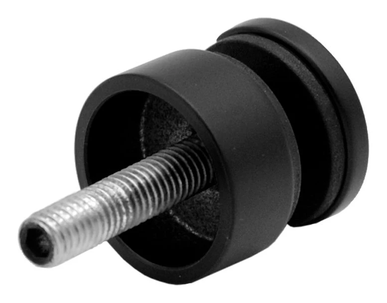 Bodový držák skla typu rotula, určený pro montáž skleněných tabulí na rovné povrchy. Kompaktní válcová konstrukce o průměru 30 mm spojuje estetiku černého matného povrchu s odolností nerezové oceli. Díky práškovému lakování získává držák zvýšenou odolnost proti korozi, což umožňuje jeho použití jak uvnitř budov, tak venku — v zábradlích, přístřešcích, větrných clonách nebo fasádách.