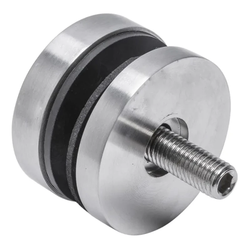 Bodový držák skla fi 50 mm je robustní upevňovací prvek určený k montáži skleněných tabulí o tloušťce od 8 do 17,52 mm. Vyroben z nerezové oceli AISI 304 v saténovém provedení zajišťuje trvanlivost a estetický vzhled jak pro interiérové, tak exteriérové aplikace. Díky plochému systému se závitem M8 je montáž rychlá a spolehlivá — stačí držák zašroubovat do připraveného plochého povrchu.