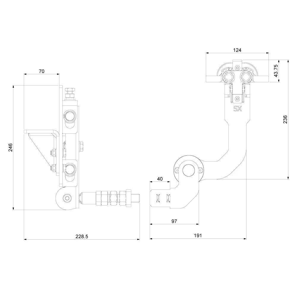 - Šířka koncovky ramene: 40 mm