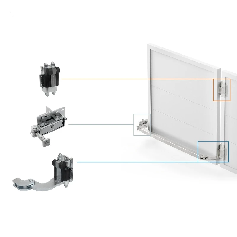Systém Albatros Piccolo spolupracuje s pohony pro křídlové brány značky Comunello. Pro komplexní instalaci jsou k dispozici také doplňkové příslušenství: systém šablon otvorů se šrouby a maticemi a spojovací profil transmisního ramene s pantem u sloupu, které výrazně urychlují proces montáže.