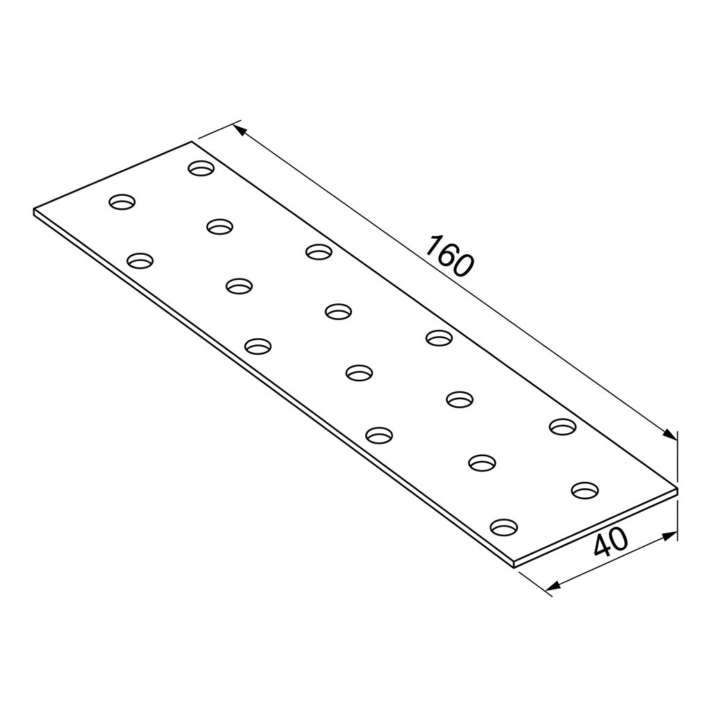 Ocelová perforovaná destička 40×160 mm je univerzální tesařský spojovací plát určený pro trvalé spoje dřevěných prvků, jejichž boční plochy leží ve stejné rovině. Vyrobena z pozinkovaného ocelového plechu o tloušťce 2 mm zajišťuje vysokou mechanickou pevnost a účinnou protikorozní ochranu — ideálně se osvědčuje při montáži střešních vazníků, dřevěných podkonstrukcí a všude tam, kde je zapotřebí spolehlivé a rychlé spojení dvou ploch.