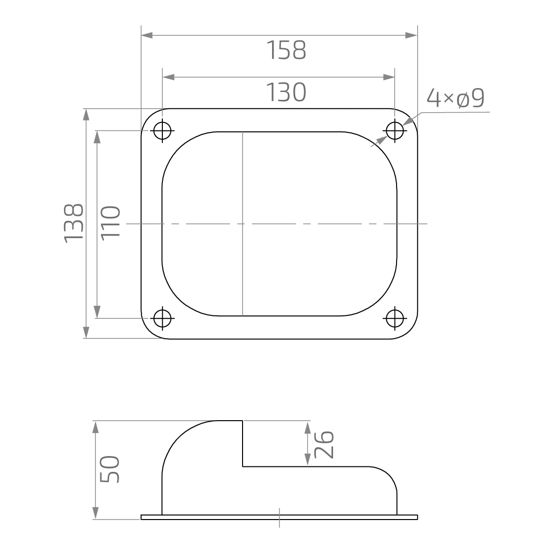 - Průměr montážních otvorů: Ø 9 mm (4 ks)