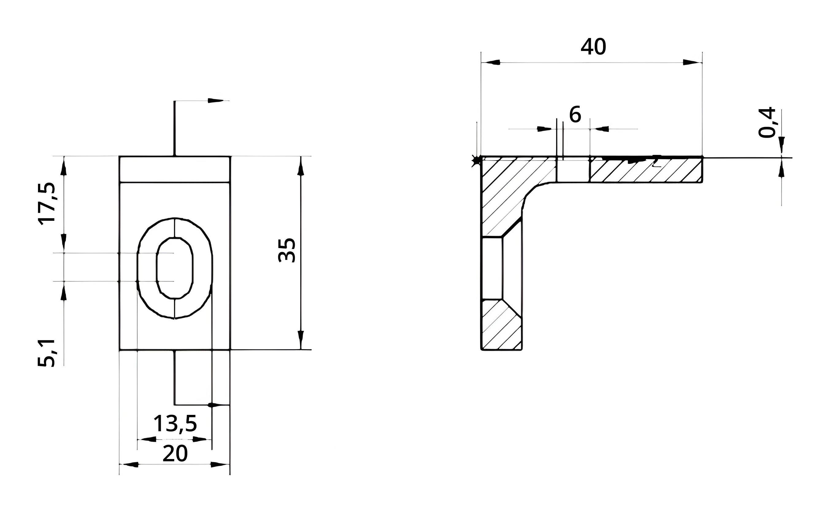 - Tloušťka vodorovného ramene s podříznutím: 0,4 mm prohloubení