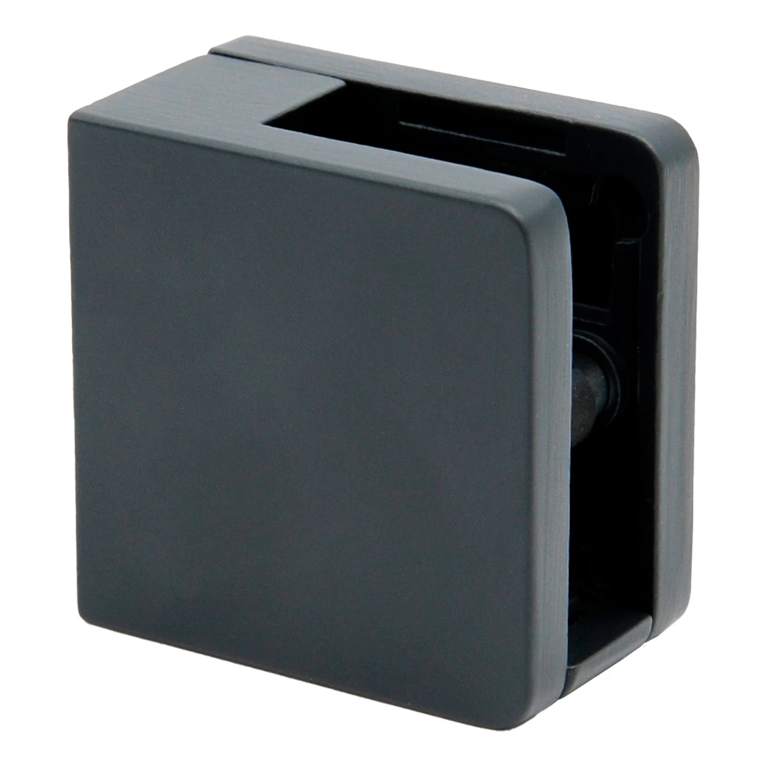 Obdélníkový držák skla v antracitové barvě určený k montáži na rovné povrchy s konzolou. Slouží ke stabilnímu uchycení skleněných tabulí o tloušťce od 6 do 10,76 mm v systémových skleněných zábradlích. Vyroben ze zámaku a opatřen práškovým lakováním, zajišťuje vysokou trvanlivost a estetický, moderní vzhled.