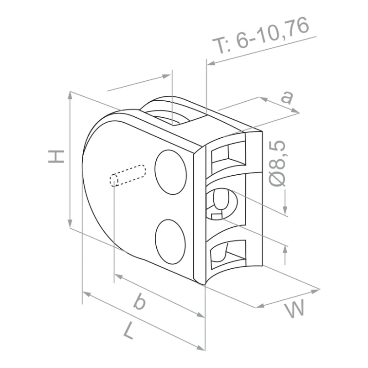 - Držák vyžaduje použití gumových těsnění — zvolte vhodnou tloušťku těsnění podle tloušťky montovaného skla
