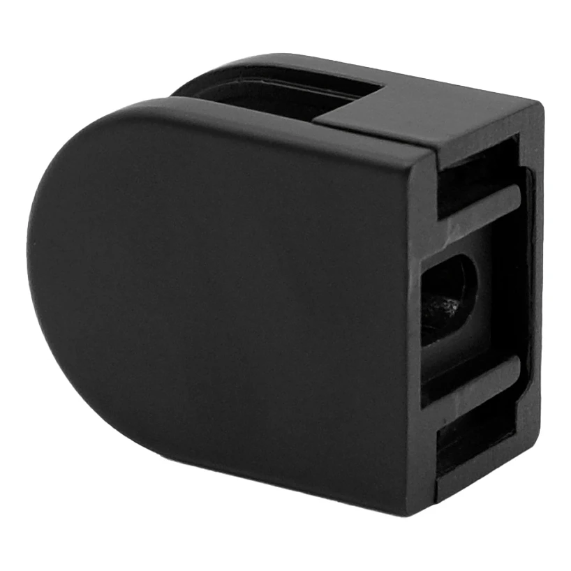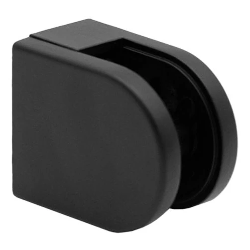 Držák skla v matně černé barvě určený k montáži na rovné povrchy. Vyroben ze zámaku a opatřen nástřikovým lakem, zajišťuje vysokou odolnost proti korozi a estetický, moderní vzhled. Ideální prvek skleněných zábradlí — jak interiérových, tak exteriérových.