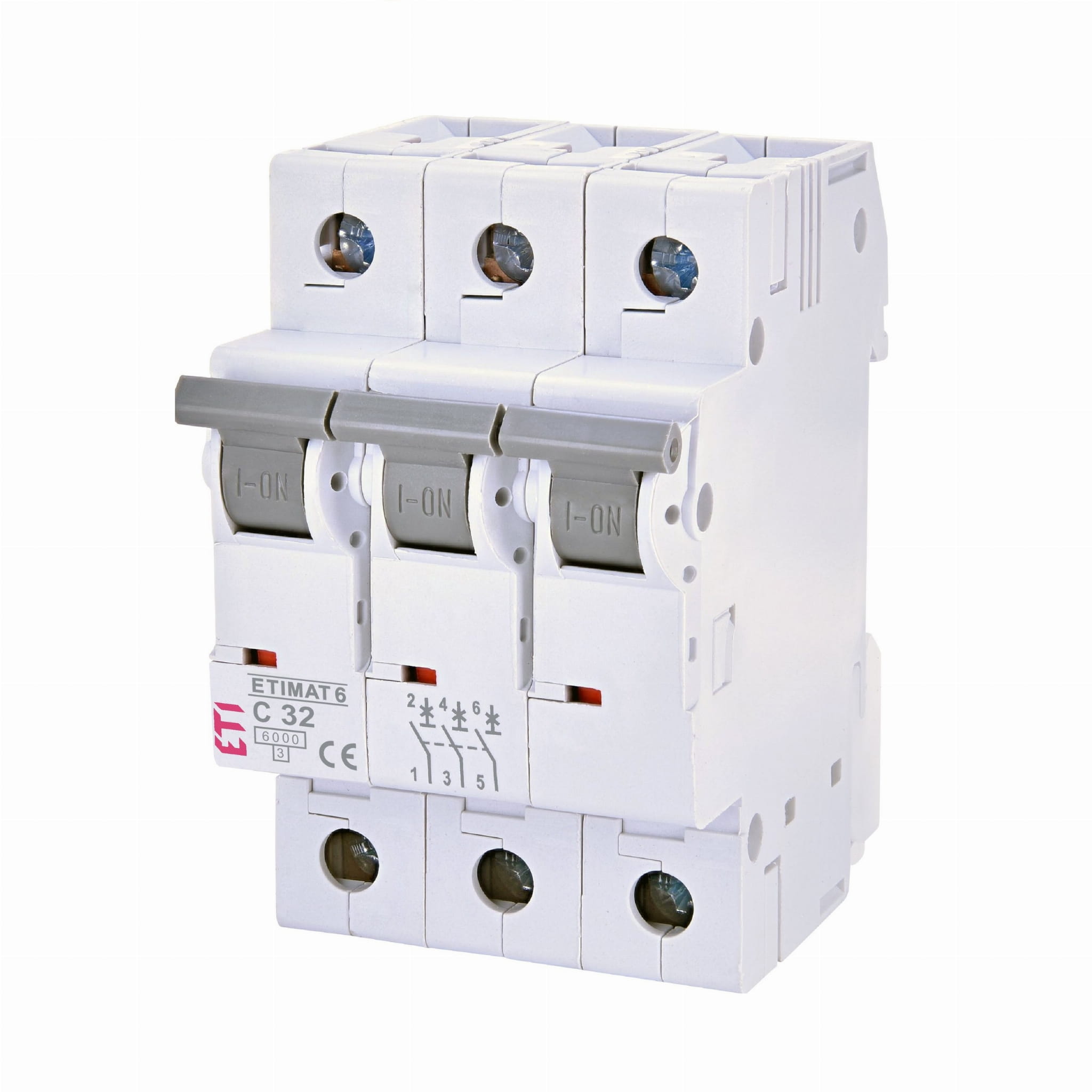 Nadproudový jistič C 32A 3P 6kA ETIMAT6 002145519 ETI je určen k ochraně elektrických obvodů proti účinkům nadměrného proudu a zkratu.