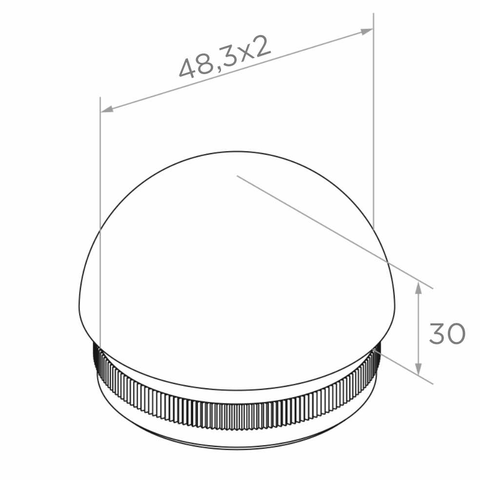 Elipsoidální záslepka zatlačovaná je estetické a trvanlivé zakončení trubek o průměru fi 48,3 × 2 mm, určené pro zábradlí, madla a sloupky z nerezové oceli. Montáž spočívá v jednoduchém zatlačení záslepky do otevřeného konce trubky — rýhovaný čep zajišťuje pevné a stabilní osazení bez nutnosti lepení či svařování. Díky tomu je instalace rychlá a nevyžaduje další nástroje, což se promítá do úspory času na stavbě.