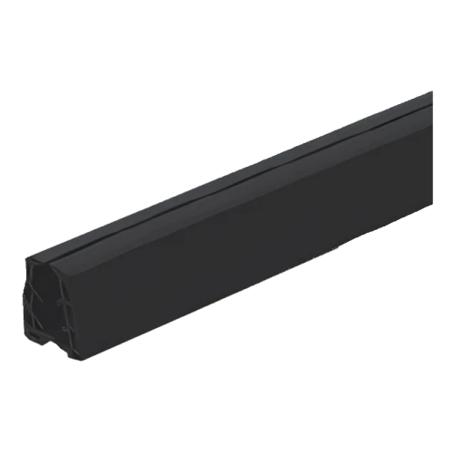 Profil těsnění má vnitřní boční komory a systém lamelových svorek, které zajišťují rovnoměrný přítlak na celé styčné ploše se sklem. Díky tomu je tabule stabilně držena i při drobných rozdílech tloušťky v rozsahu 8–11 mm. Konstrukce minimalizuje riziko vibrací a vůle, což se promítá do tiché a trvalé exploatace zábradlí.