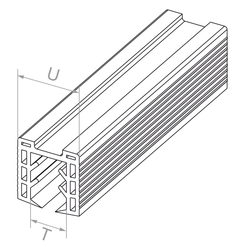 Přítlačná guma pro nasazovací madlo určená pro skleněná zábradlí. Těsnění se montuje dovnitř madla za účelem spolehlivého upevnění a zabezpečení skleněné tabule o tloušťce od 8 do 11 mm. Vnitřní struktura profilu s komorami a upínacími lamelami zajišťuje pružný a současně stabilní přítlak – sklo je spolehlivě drženo bez rizika poškození hran.