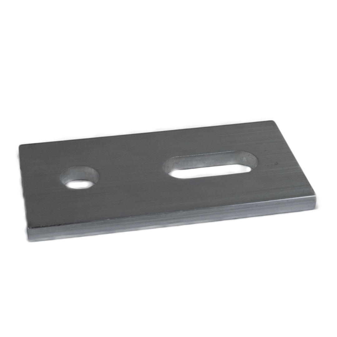 Hliníkový adaptér o rozměrech 40x80x5 mm s otvorem 11 mm určený pro fotovoltaické systémy