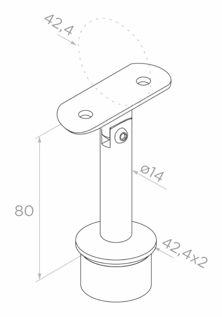 Kloubový držák zábradlí pro systém zábradlí 42,4 mm, určený k lepení do sloupku pomocí anaerobního lepidla. Díky kloubové konstrukci umožňuje plynulé nastavení úhlu sklonu madla, což výrazně usnadňuje montáž schodišťových zábradlí a eliminuje nutnost přesného řezání prvků pod individuálním úhlem.