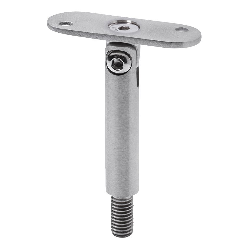 Kloubová tyč je určena k montáži v systémech zábradlí z nerezové oceli — zejména v schodišťových zábradlích, kde je požadována změna úhlu vedení madla. Kloub umožňuje plynulé nastavení sklonu montážního plesku vůči ose čepu, díky čemuž madlo běží rovnoběžně s linií schodů bez nutnosti použití dodatečných úhlových prvků. Hodí se všude tam, kde instalatér potřebuje flexibilní spojení sloupek–madlo: schodišťové prostory, mezipatra, podesty a galerie.