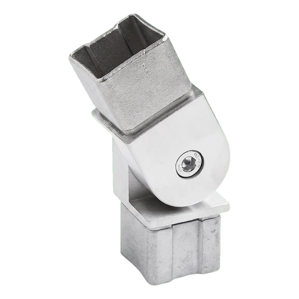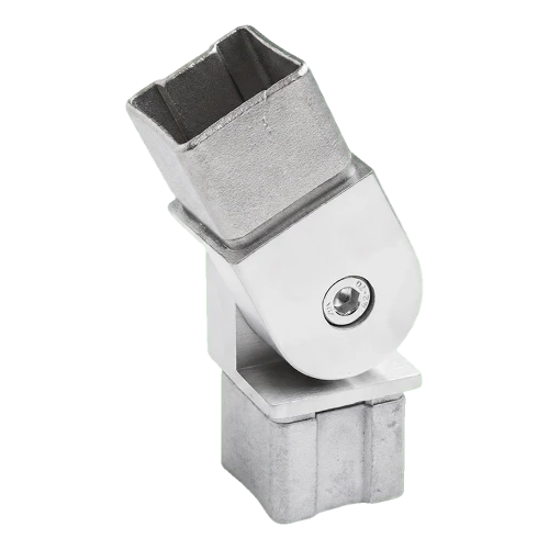 Konektor je určen pro zábradlové systémy založené na čtvercových profilech 40x40 mm. Umožňuje vytváření úhlových spojení na schodech a rampách, kde se úhel sklonu madla mění podle projektu. Kloub umožňuje precizní nastavení úhlu přímo na stavbě, eliminuje nutnost předchozího vyřezávání prvků pod konkrétní úhel. Produkt je určen k použití s anaerobním lepidlem — doporučujeme použití specializovaného lepidla pro zábradlová spojení z nerezové oceli.