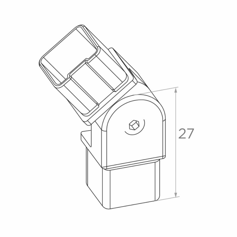 Kloubový úhel 90°–180° je precizní zábradlový konektor určený pro čtvercové profily 40x40 mm s tloušťkou stěny 2 mm. Díl vyrobený z nerezové oceli AISI 304 v elegantním saténovém provedení zajišťuje trvalé a estetické spojení madel se sloupky v nerezových zábradlích. Díky nastavitelnému kloubu umožňuje nastavení úhlu od 90° do 180°, což umožňuje volné přizpůsobení sklonu madla tvaru schodů, podest a ramep — bez nutnosti svařování či řezání profilů pod úhlem.