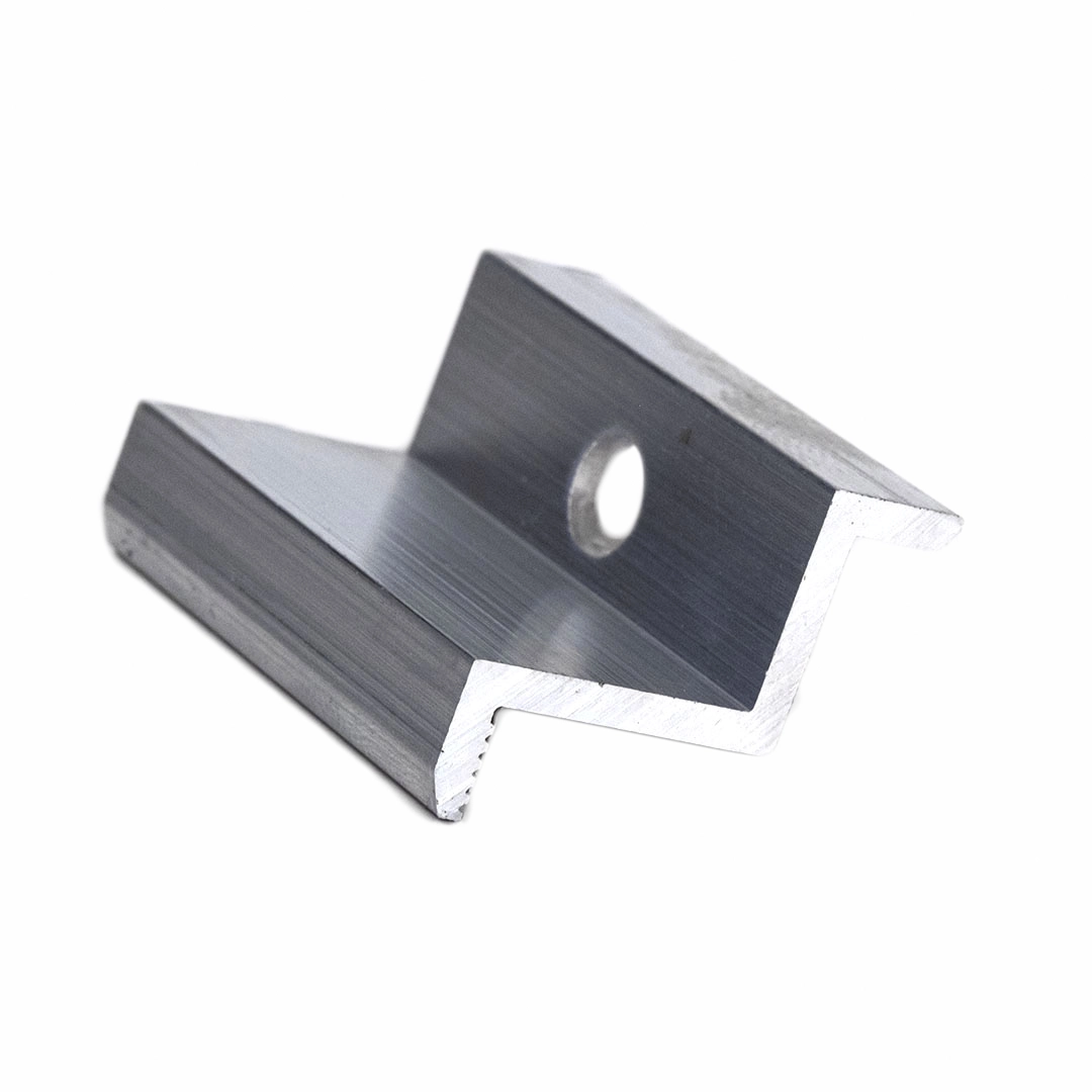 Boční přítlačná svorka z hliníku 6060, 30 mm, otvor M8, pro fotovoltaické moduly.