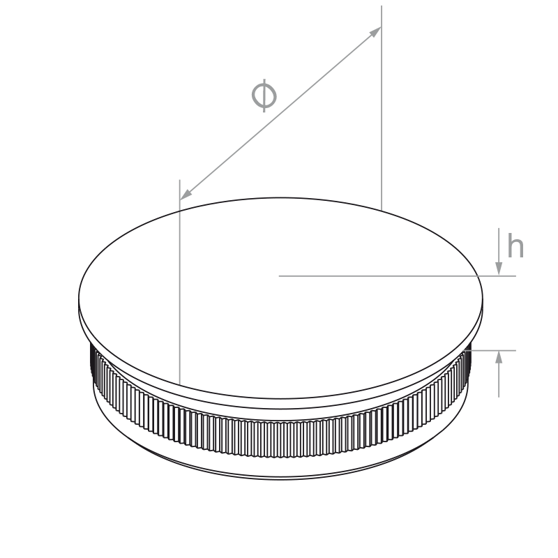 Konvexní záslepka zatlačovaná je dokončovací prvek určený pro zábradlové trubky o průměru Ø42,4 mm. Maskuje otvor trubky, chrání její vnitřek před atmosférickými srážkami a korozí, současně dodává zábradlí estetický, profesionální vzhled. Montáž spočívá v zatlačení záslepky do vnitřku trubky — vrubkovaný povrch dříku zajišťuje pevné a trvalé usazení bez nutnosti použití dodatečných spojů.
