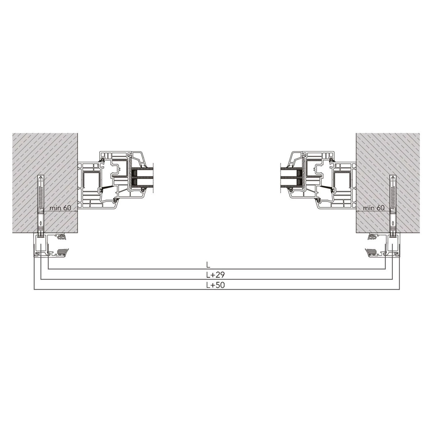 Technické výkresy systému KB5000 přesně definují vztahy mezi šířkou otvoru a požadovaným rozměrem skla:
