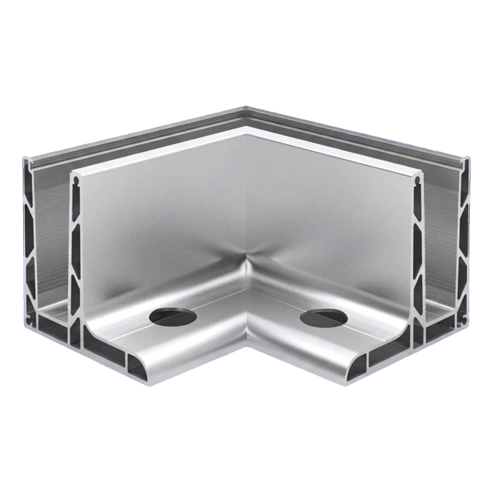 Rohový L profil 90° Kozza KE 105 je konstrukční prvek určený pro stavbu celoskleněných zábradlí v plochém systému. Profil slouží k propojení dvou skleněných tabulí v pravém úhlu ve vnějších rozích, zajišťuje pevné a estetické spojení bez viditelných upevňovacích prvků z přední strany.