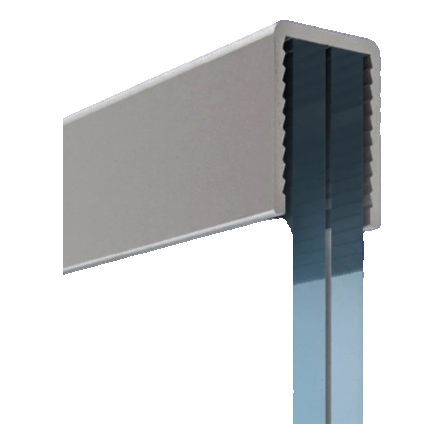 Hliníkový obdélníkový úchyt Kozza je profesionální dokončovací prvek zábradlí a celoskleněných přepážek, určený k montáži na sklo o tloušťce 12–13,52 mm. Profil ve tvaru písmene U se nasadí na horní hranu tabule a upevní se přímo lepidlem nebo silikonem — bez vrtání, bez těsnění a bez rizika poškození skla. Díky tomu je instalace rychlá, čistá a nevyžaduje specializované nástroje.