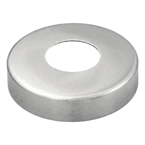 Kruhový tvar rozety se dokonale hodí k tradičním nerезovým zábradlím. Univerzální konstrukce usnadňuje montáž — stačí nasunout kryt na trubku a usadit na základnu. Díky nízké hmotnosti (45 g) a kompaktním rozměrům prvek nezatěžuje konstrukci a je snadno skladovatelný a transportovatelný.