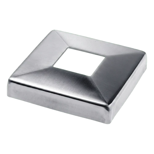 Rozeta je určena pro systémy nerezových zábradlí založené na čtvercových profilech 40×40 mm. Ideálně se hodí při montáži skleněných a tyčových zábradlí na schodištích, balkonech, terasách a mezipatrech. Kryje místo průchodu sloupku podlahou nebo konstrukčním prvkem a zajišťuje čisté, upravené zakončení.