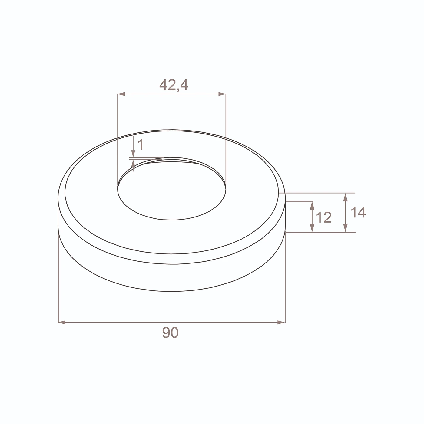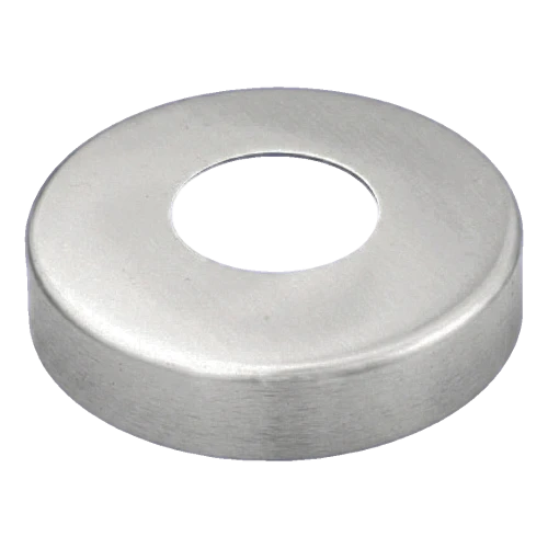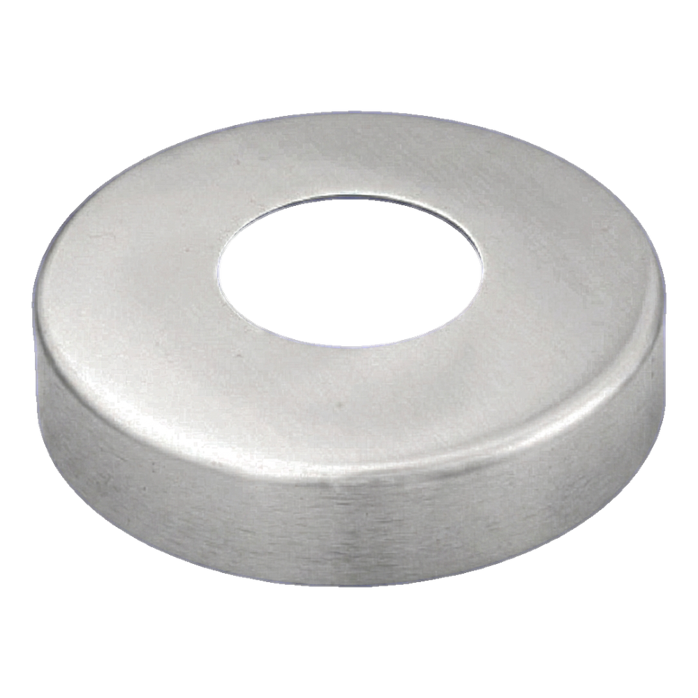 Krycí rozeta (zakrývací prvek) z nerezové oceli AISI 304 určená pro estetické zakrytí montážních otvorů kolem trubek o průměru 42,4 mm v zábradlích a nerezových konstrukcích. Saténová povrchová úprava zajišťuje elegantní, tlumený vzhled a současně účinně maskuje nedokonalosti místa průchodu sloupku nosným prvkem.