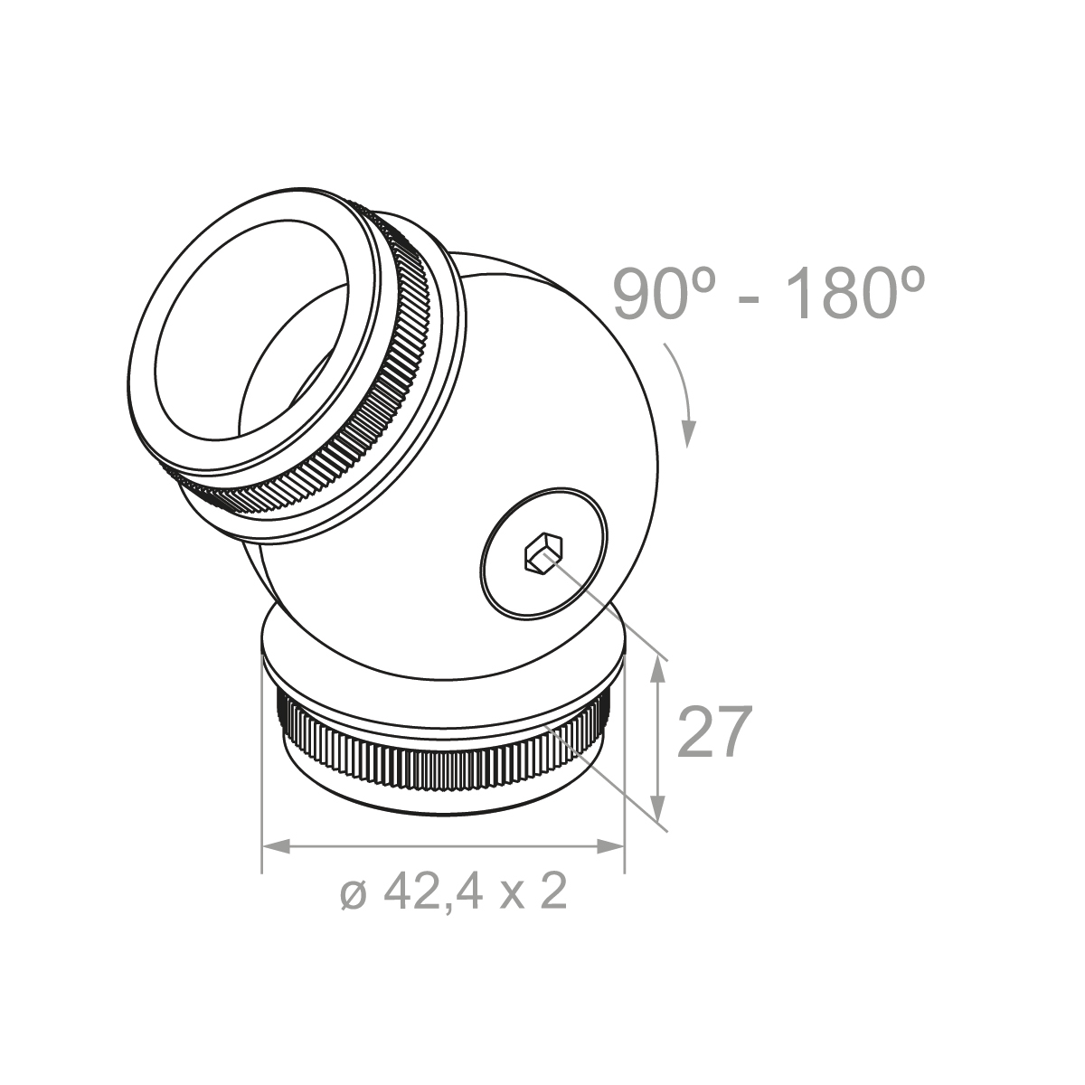 Kulový kloubový konektor nastavitelný 90°–180° pro trubku ø42,4 mm – nerezová ocel AISI 304 satén