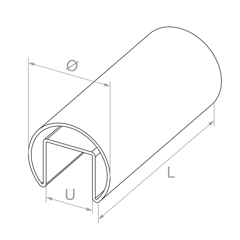 Nasazené madlo je určeno pro celoskleněná zábradlí — plní současně funkci zábradlí a dokončovacího prvku horní hrany skleněné tabule. Nachází uplatnění v obytných budovách, komerčních objektech, hotelech a kancelářských budovách — všude tam, kde je vyžadováno spojení moderní estetiky s bezpečností užívání. Délka 2,5 m umožňuje pokrytí standardních úseků zábradlí při minimálním počtu spojů.