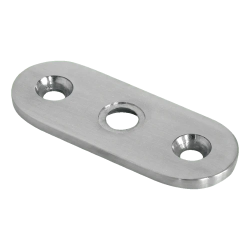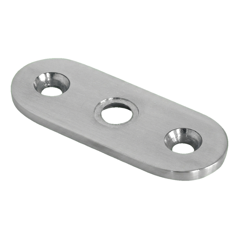 Plíšek je určen pro systém plochých zábradlí a přišroubovává se shora pomocí šroubů. Střední otvor s kuželovým prohloubením umožňuje použití šroubu se zapuštěnou hlavou, což zaručuje rovný, estetický montáž. Dva boční montážní otvory zajišťují dodatečnou stabilizaci a rovnoměrné rozložení zatížení.