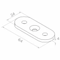 Montážní plíšek pro držák zábradlí určený k montáži na rovné plochy — ideální řešení při výstavbě zábradlí a madlových systémů z nerezové oceli. Díky kompaktním rozměrům 64 × 24 × 4 mm a třem montážním otvorům prvek zajišťuje pevné, stabilní spojení držáku zábradlí s podkladem.