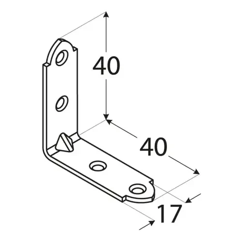 Úzká lisovaná úhelníková spojka 40×40×17 mm je kompaktní montážní spojovací prvek určený pro drobné truhlářské a nábytkářské práce. Díky úzkému profilu (17 mm) se ideálně hodí pro upevnění na úzkých bocích prken a nábytkových desek. Trojrozměrné lisování zpevňuje konstrukci úhelníku, čímž zajišťuje vyšší tuhost a únosnost spoje v porovnání s plochými úhelníky.