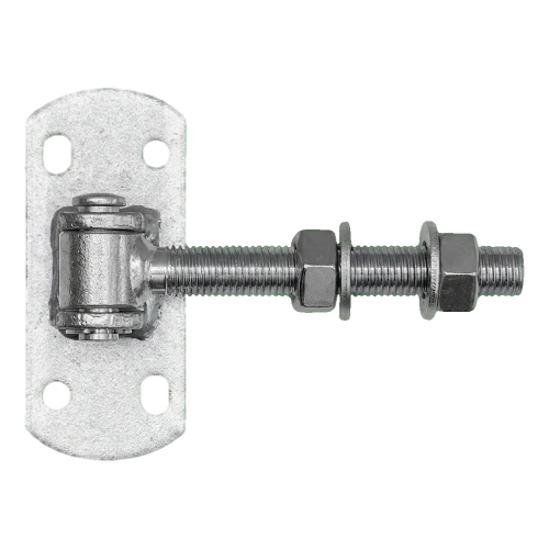 Nastavitelný pant M16 se štítkem 115×50 mm je odolný kování prvek určený k montáži křídlových bran a vrátek. Díky závitu M16 s nastavovací maticí umožňuje přesné nastavení polohy křídla jak při montáži, tak během pozdějšího používání — např. po prověšení konstrukce nebo vlivem extrémních teplot.
