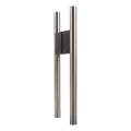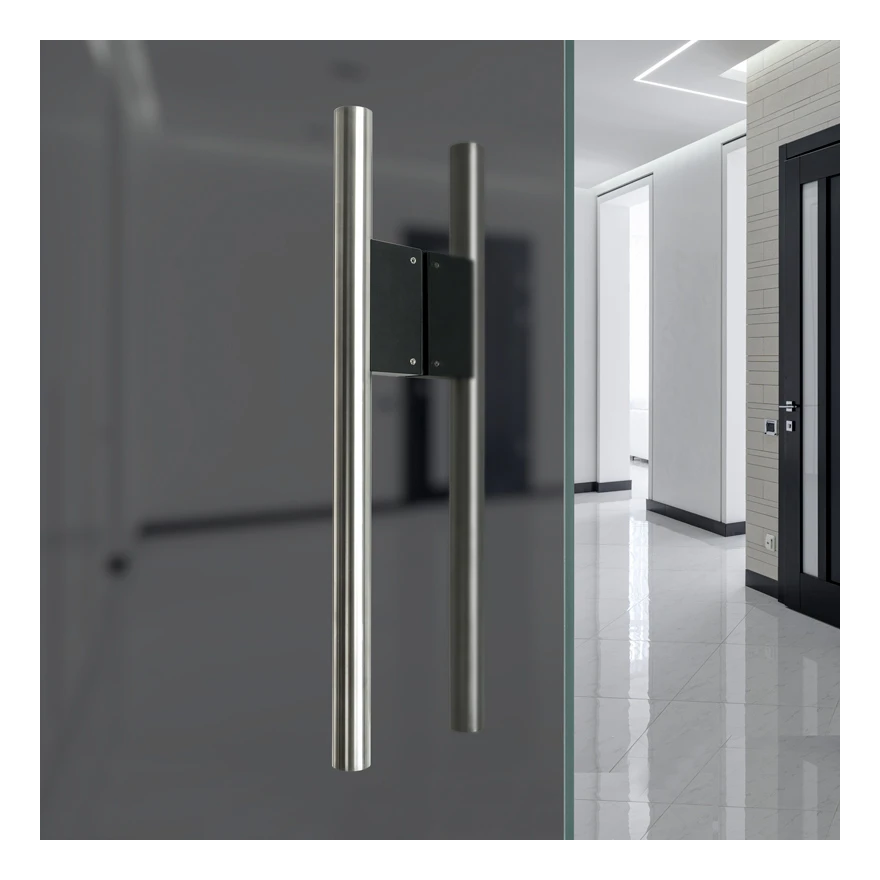 Všestrannost montáže je klíčovou výhodou této kliky. Jemně broušený povrch nerezové oceli činí trubku výjimečně hladkou a hedvábnou na dotek, což se promítá do komfortu každodenního používání. Klasická, nadčasová forma se dokonale snoubí jak s moderními kancelářskými proskleními, tak s tradičními vnitřními dveřmi. Konstrukce se dvěma rovnoběžnými trubkami spojenými černým držákem vytváří elegantní barevný kontrast, který podtrhuje minimalistický design.