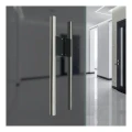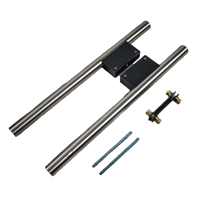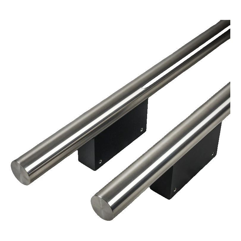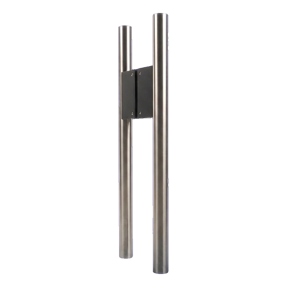 Oboustranná dveřní klika o průměru 30 mm a délce 500 mm, vyrobená kompletně z nerezové oceli AISI 304 v satinovém provedení. Elegantní černý hliníkový držák s práškovým lakováním dodává kličce moderní, minimalistický charakter. Univerzální upevnění v sadě umožňuje namontovat kliku na skleněné, dřevěné a kovové dveře — jedno řešení pro více typů realizací.