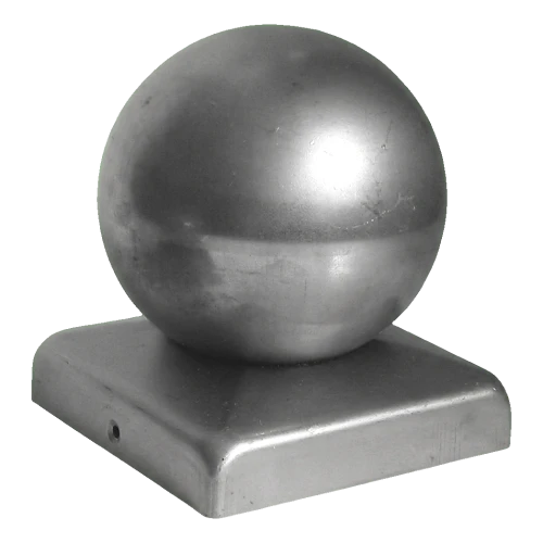 Ocelová plotová stříška s ozdobnou koulí určená k dokončení sloupků s průřezem 50×50 mm. Dekorativní koule o průměru fi 50 mm dodává plotu estetický, dopracovaný vzhled a současně účinně chrání sloupek před vnikáním dešťové vody a urychlením korozních procesů. Produkt je továrně pozinkovaný — připraven k montáži bez nutnosti dodatečné ochrany povrchu.