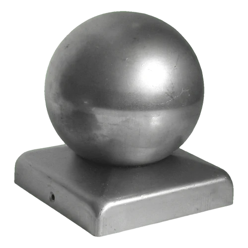 Ocelová plotová stříška s koulí 120×120 mm / fi 100 mm – surová
