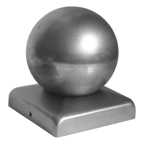 Ocelový oplotový střešní kryt s dekorativní koulí určený pro dokončení sloupků s čtvercovým průřezem 100×100 mm. Ozdobná koule o průměru fi 80 mm dodává plotu estetický, reprezentativní vzhled a zároveň chrání sloupek před negativním působením povětrnostních podmínek — deště, sněhu a vlhkosti.