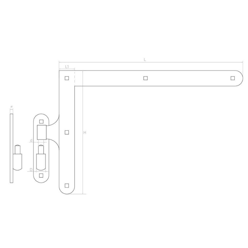 Esteticky dokončená ramena s ozdobnými zakončeními dodávají pantu reprezentativní vzhled, ideální pro vjezdové brány, zahradní bránky a dveře v rustikálním stylu. Masivní konstrukce z oceli o tloušťce plechu 5 mm zajišťuje vysokou nosnost — panty se neohýbají ani pod tíhou těžkých křídel.