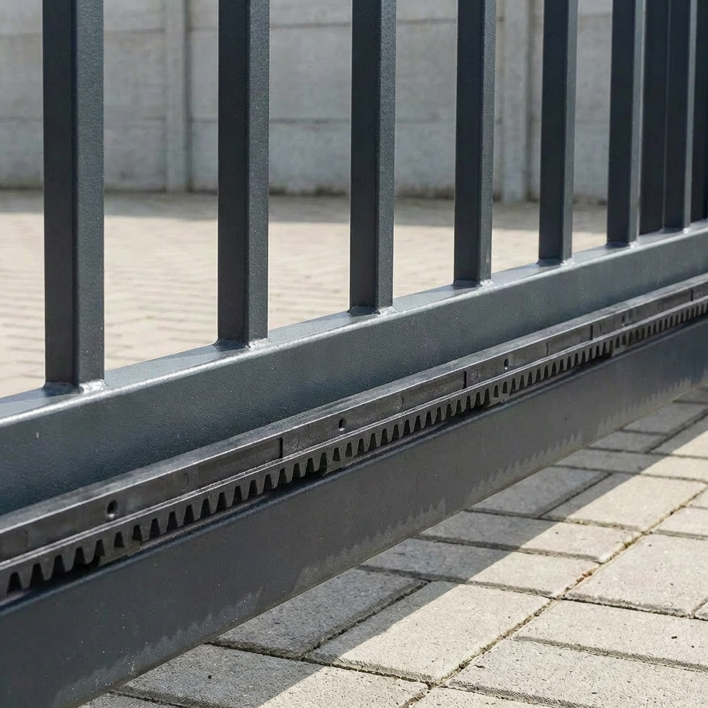 Ozubená lišta z plastu se zalitým ocelovým jádrem je spolehlivým prvkem pohonu samonosných posuvných bran. Díky kombinaci pevnosti oceli a tiché funkce plastového pláště lišta zajišťuje plynulý a bezhlučný provoz bránové automatiky po celou dobu životnosti.