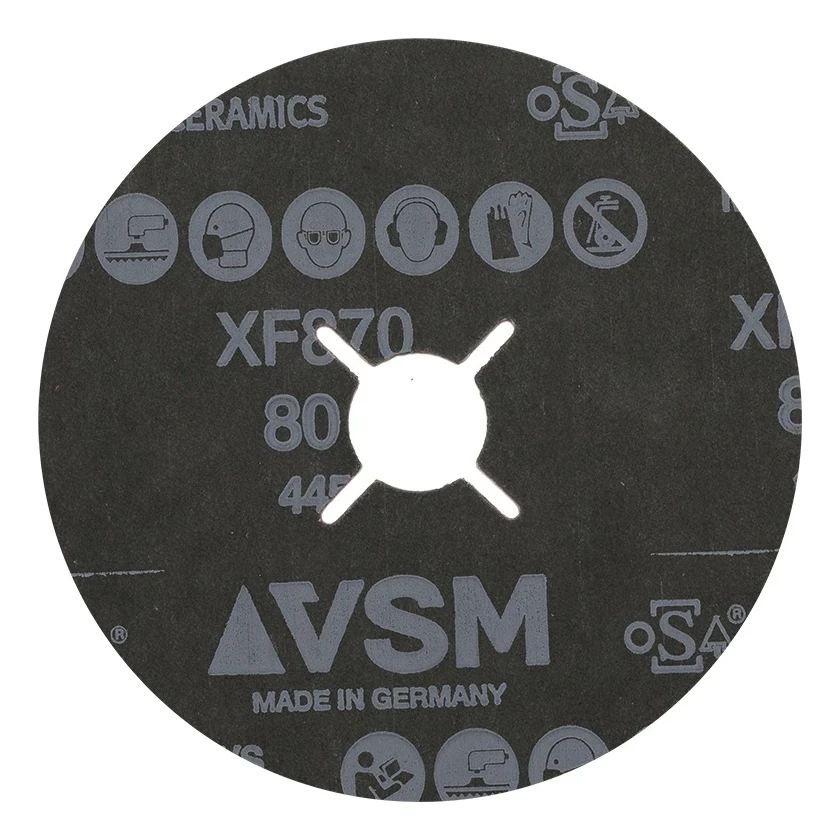 Keramické vláknové kotouče série XF870 se ideálně hodí pro obrábění konstrukční oceli, nerezové oceli (INOX) a dalších kovů a slitin. Díky samoostřícímu se keramickému zrnu si kotouč udržuje vysokou výkonnost broušení po celou dobu používání — výrazně déle než klasické kotouče z elektrokorundu nebo zirkonu.