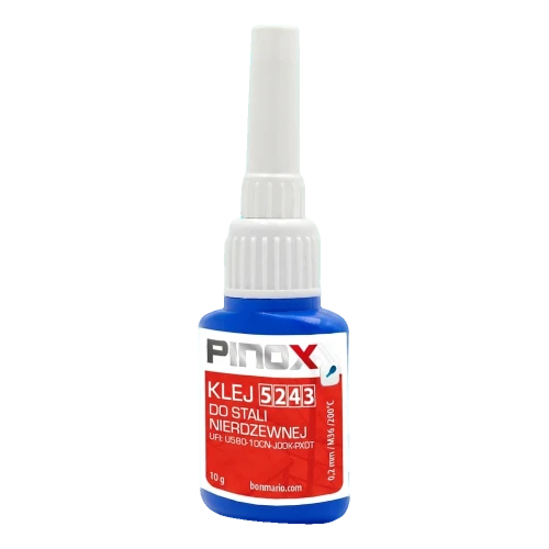 PINOX 5243 je jednosložkové anaerobní lepidlo navržené speciálně pro spojování prvků z nerezové oceli. Jeho formule se aktivuje při kontaktu s kovem a současném odříznutí přístupu kyslíku, čímž vytváří trvalé a odolné spojení, které se v čase neuvolňuje. Výrobek se ideálně hodí při montáži zábradlí, konstrukcí z nerezové oceli a všude tam, kde je vyžadováno spolehlivé zajištění závitových a koaxiálních spojů.