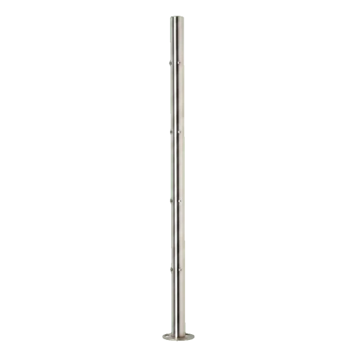 Verze nevyzbrojená poskytuje plnou volnost konfigurace — 8 závitových otvorů M6 rozmístěných na 4 úrovních umožňuje montáž libovolných držáků tyčí, skleněných výplní či jiných příslušenství zábradlí. Je to ideální řešení pro projekty vyžadující nestandardní řešení, kde instalatér sám vybírá prvky pro konkrétní uspořádání zábradlí.