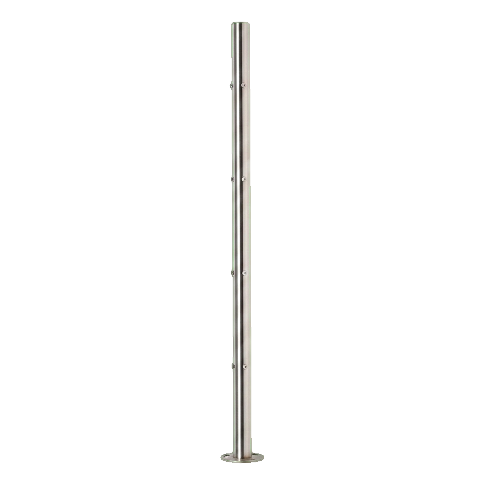 Nerezová ocel AISI 304 zaručuje vysokou odolnost proti korozi ve standardních podmínkách prostředí, což činí tento sloupek vhodným jak pro vnitřní použití, tak v omezeném rozsahu — pro venkovní (mimo mořské prostředí a silně chemicky agresivní).