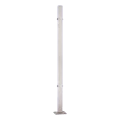 Sloupek je určen pro uchycení přímo do podlahy pomocí přivařené základové desky o rozměrech 105×105 mm. Čtyři oválné montážní otvory (fazolky) v základně umožňují přesné nastavení polohy při instalaci, což významně urychluje montážní práce a eliminuje chyby.