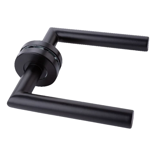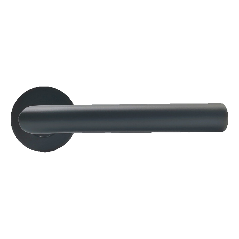 PSG Modena – černá rovná dveřní klika se ocelovým kulatým štítkem