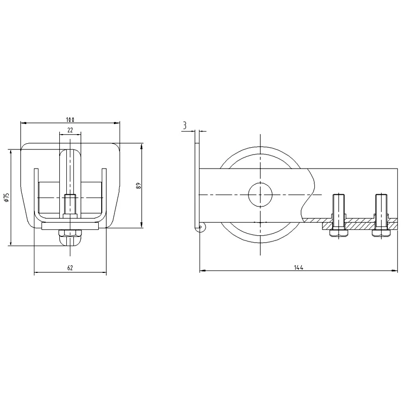 Nájezdová branka pasuje na kolejnici s průřezem 89×100×5 mm. V balení se nachází montážní šrouby, což umožňuje okamžitou montáž bez nutnosti kompletování dalších spojovacích prvků.