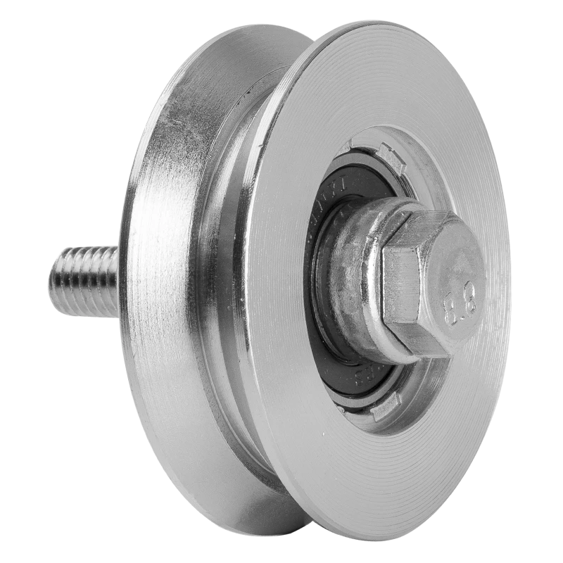 Ocelové pojezdové kolečko typu V určené pro posuvné kolejnicové brány. Díky pozinkovanému povrchu zajišťuje vysokou odolnost proti korozi a dlouhotrvající, bezporuchový provoz — i v náročných povětrnostních podmínkách. V kompletu s montážním šroubem, což zkracuje čas instalace a eliminuje nutnost samostatného kompletování spojovacích prvků.