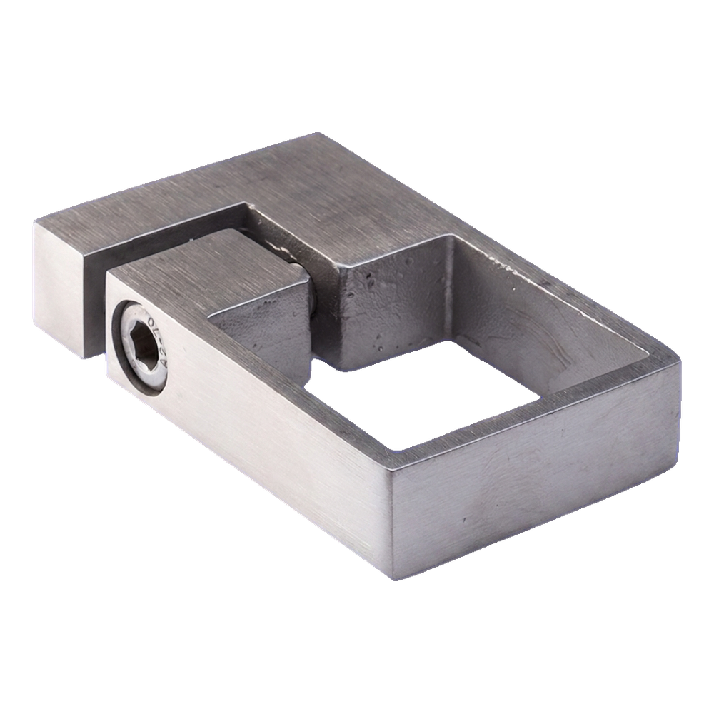 Svěrná objímka pro boční upevnění sloupku zábradlí o profilu 40×40 mm. Prvek určený k montáži do stěny, schodišťového líce nebo jiné vertikální plochy — zajišťuje stabilní podepření sloupu balkonového, terasového nebo schodišťového zábradlí. Vyrobena z nerezové oceli AISI 304 v saténovém povrchu, což zaručuje vysokou odolnost proti korozi a estetický, moderní vzhled.