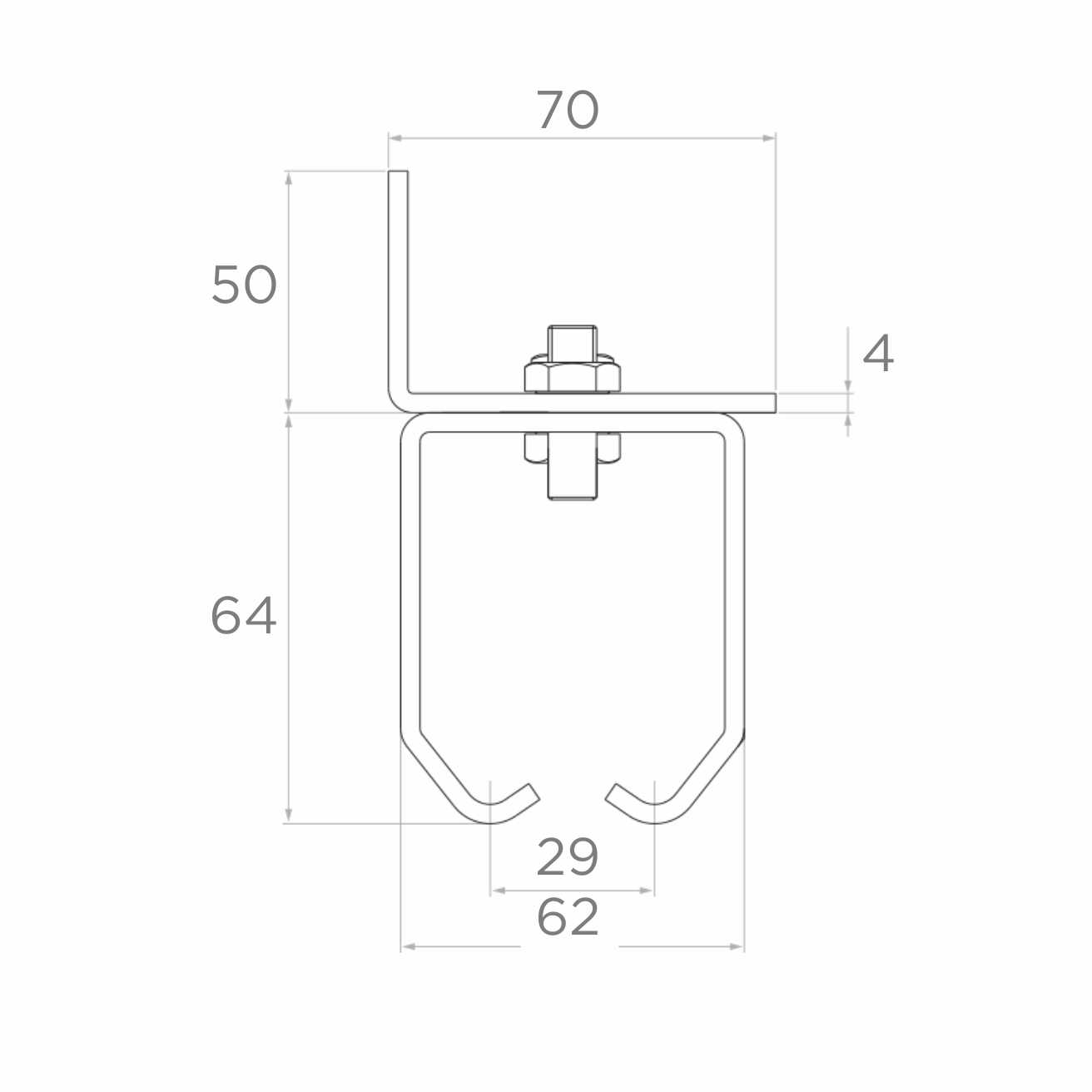 Pozinkovaný boční závěs PSG určený pro upevnění kolejnice (ceovníku) 50×46 mm u závěsných posuvných bran. Díky nastavitelné boční montáži umožňuje přesné nastavení jízdní kolejnice brány i na nerovných površích stěn a sloupů. Komplet je dodáván se šrouby pro upevnění, což eliminuje nutnost samostatného objednání spojovacího materiálu a urychluje realizaci montáže.